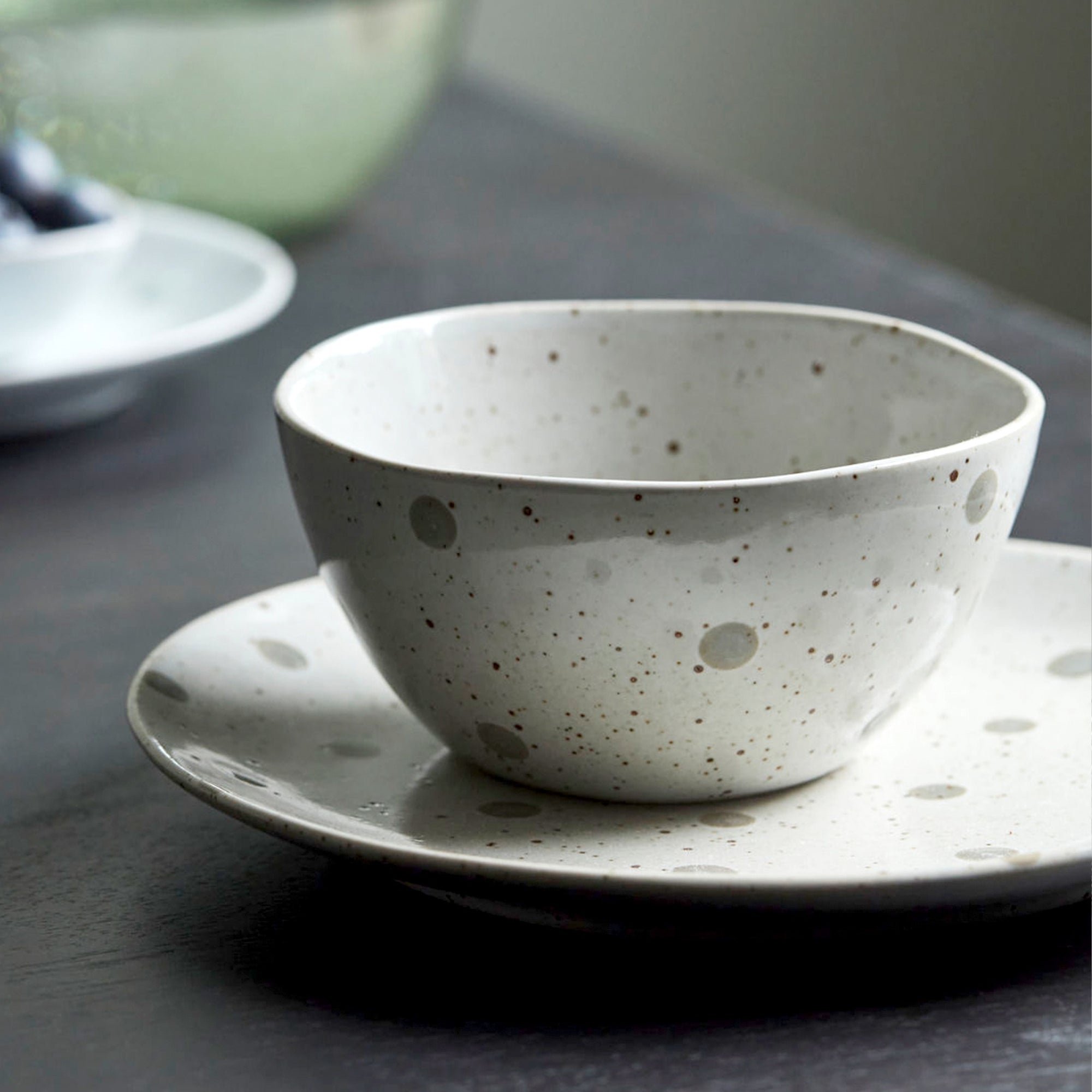 House Doctor White Bowl with Green Dots