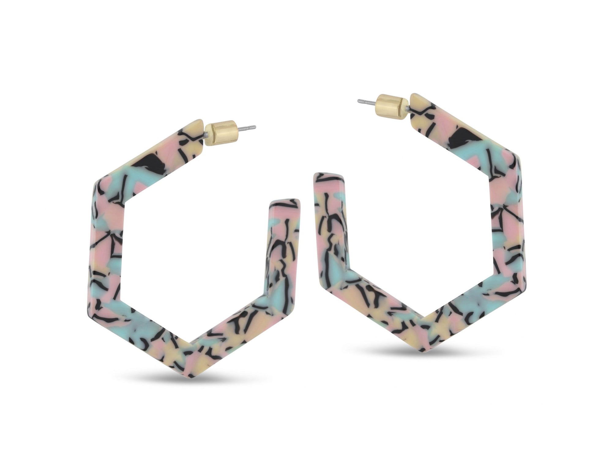 Olivia Hexagon Resin Earrings in Multi Blue