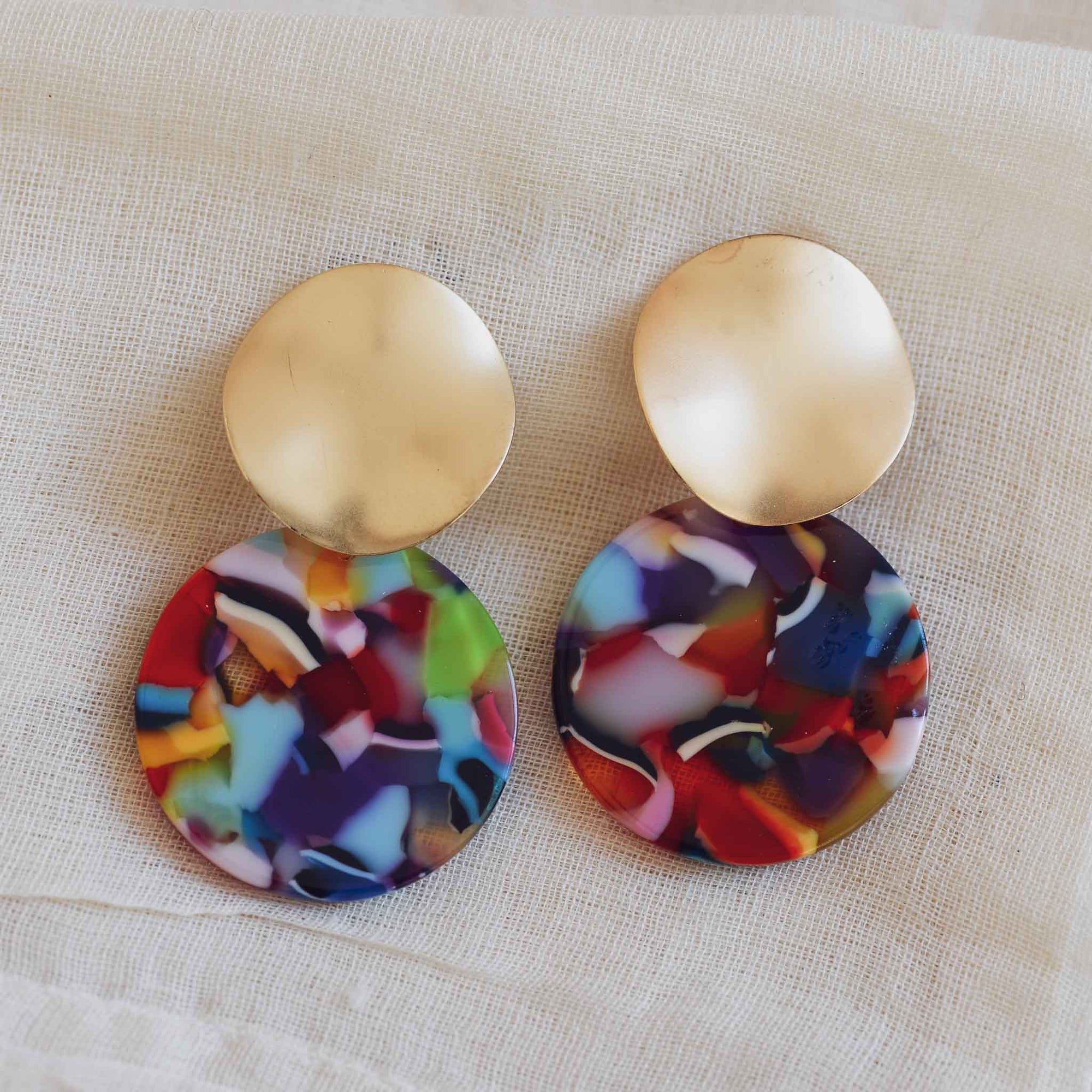 Sarah Resin Two Tone Earrings Orange Red Lilac