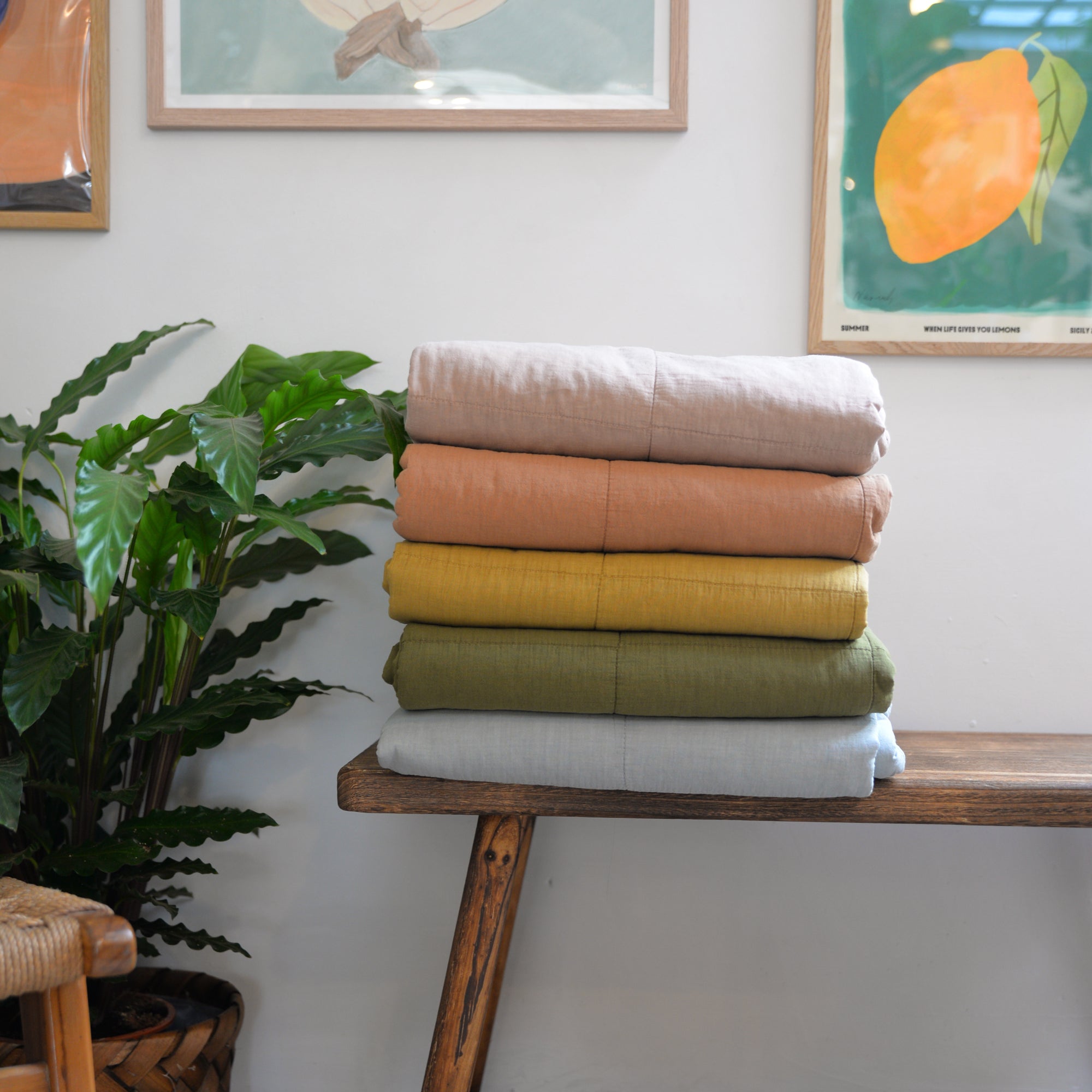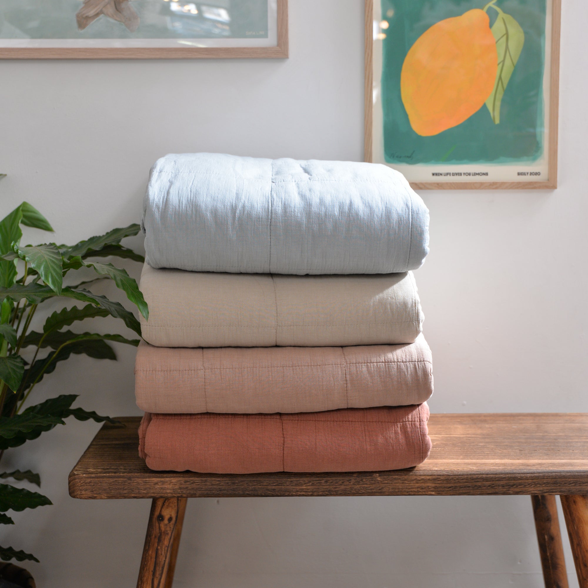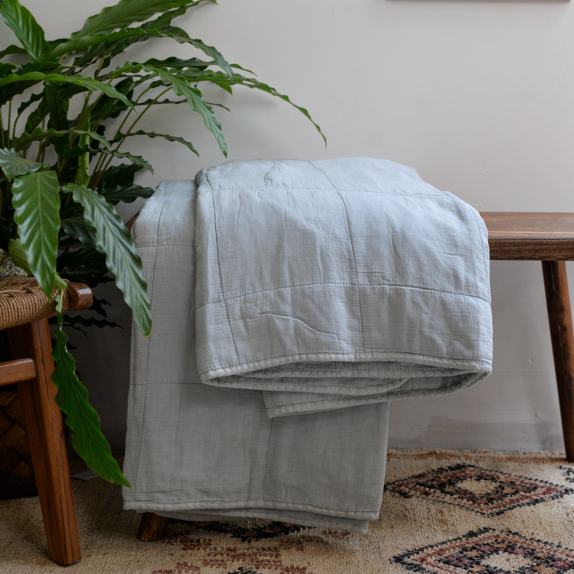 Vintage Quilt in Herbal Green / 130 x 180