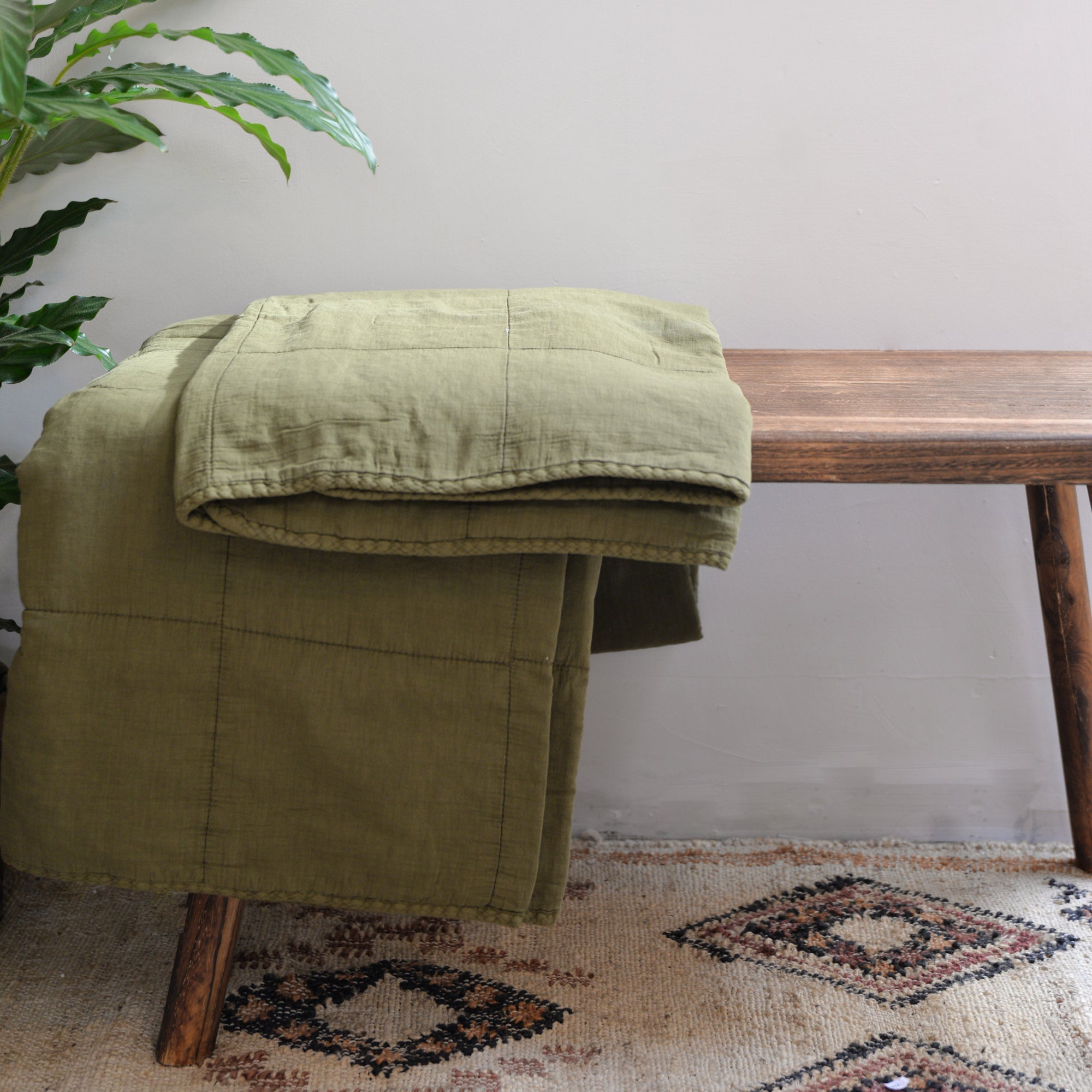 Vintage Quilt in Olive / 130 x 180