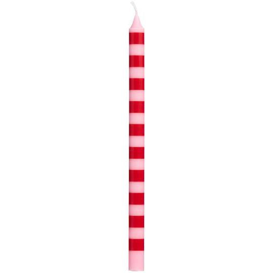 Red & Pink Striped Thin Taper Candle