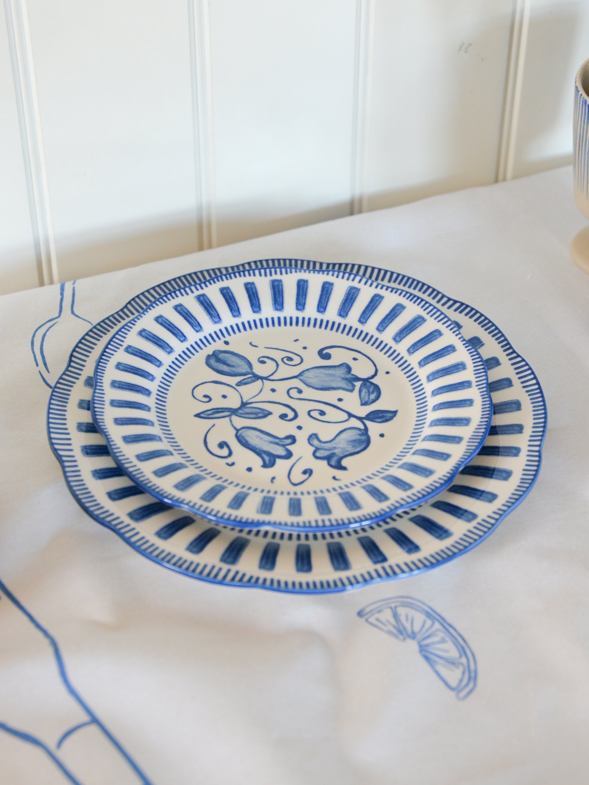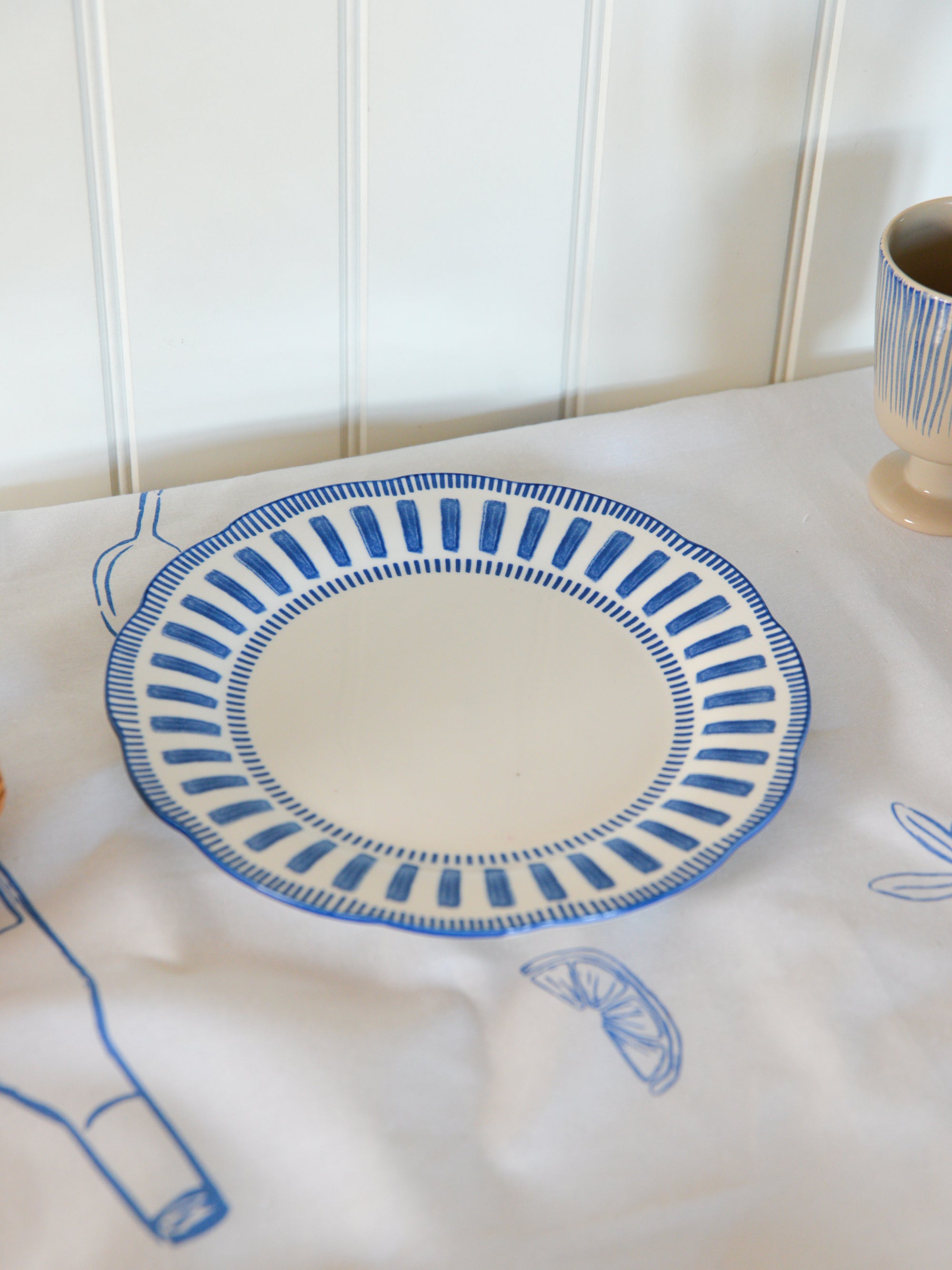 French Porcelain Scalloped Dinner Plate /Blue