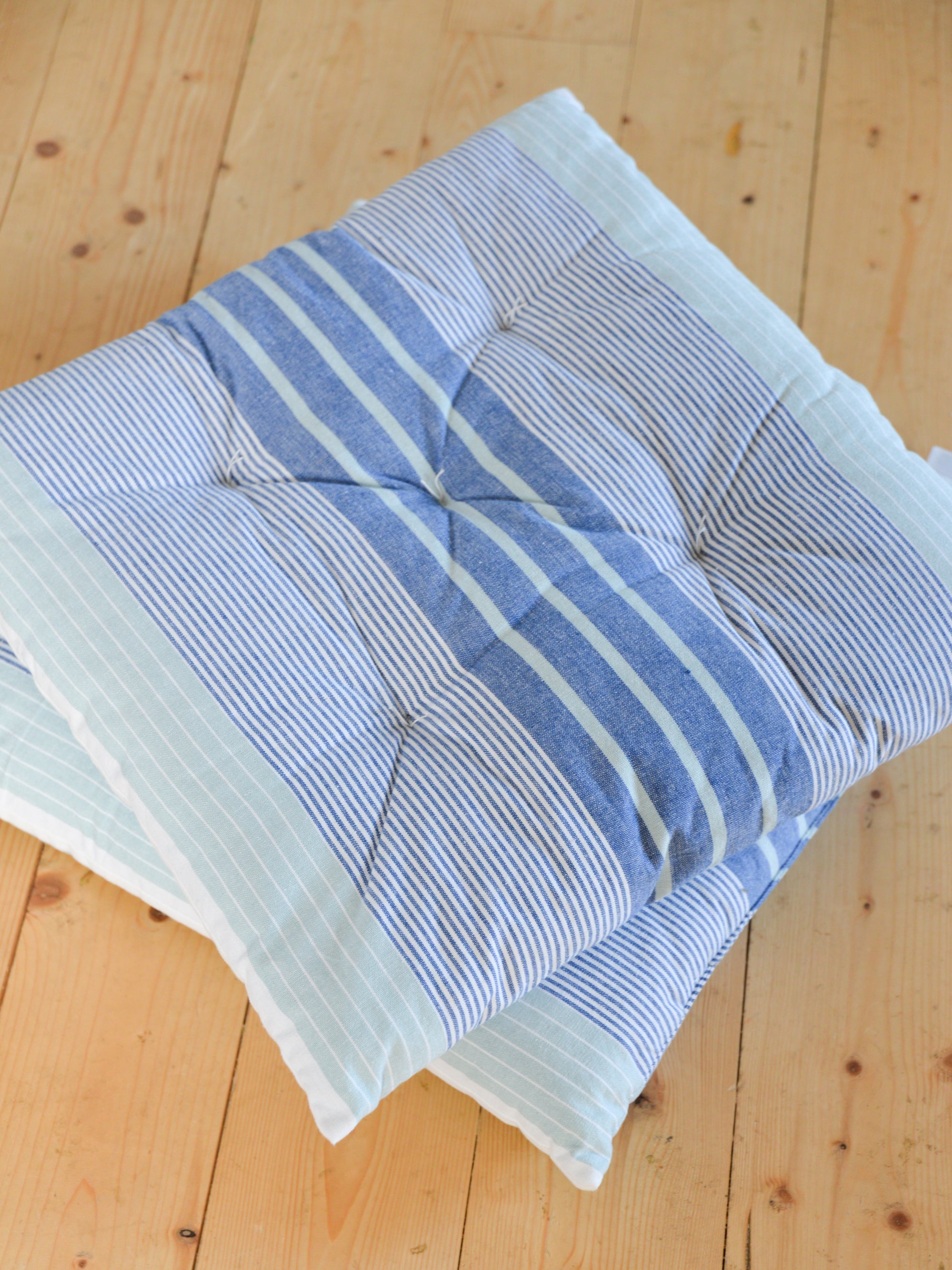 Seat Cushion / Blue & White Stripes