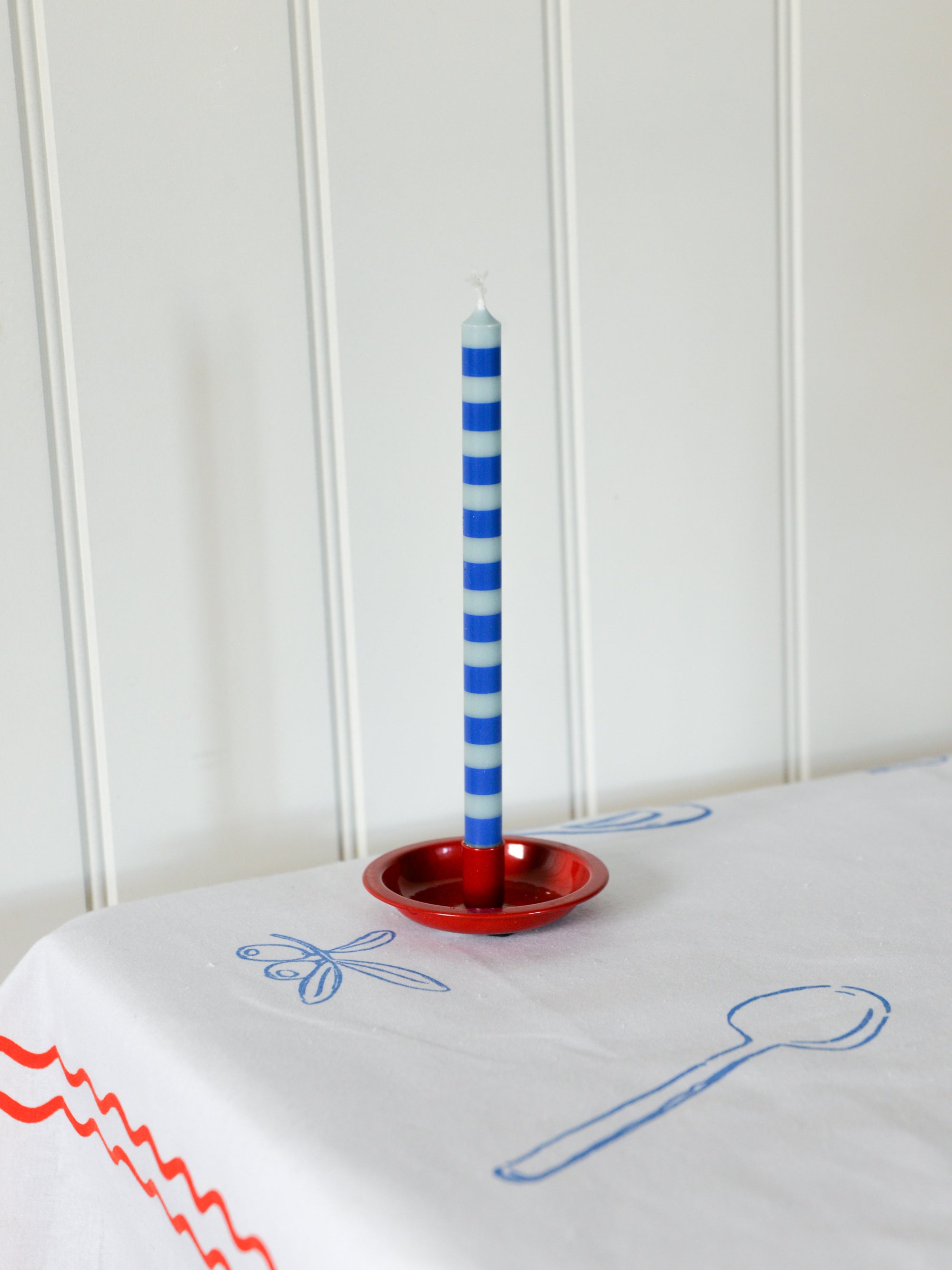 Blue Striped Thin Taper Candle