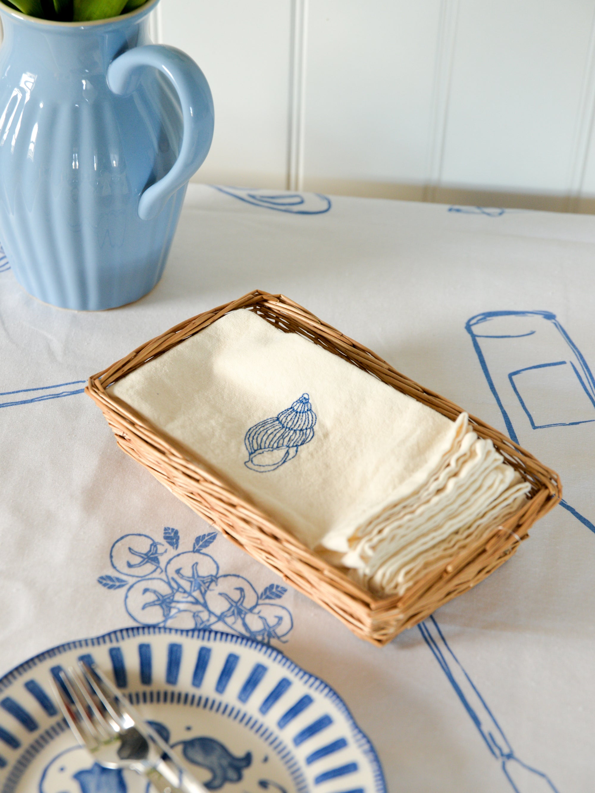 Blue Conch Embroidered Napkin