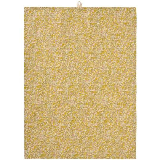 Yellow, Green & Pink Flowers Tea Towel