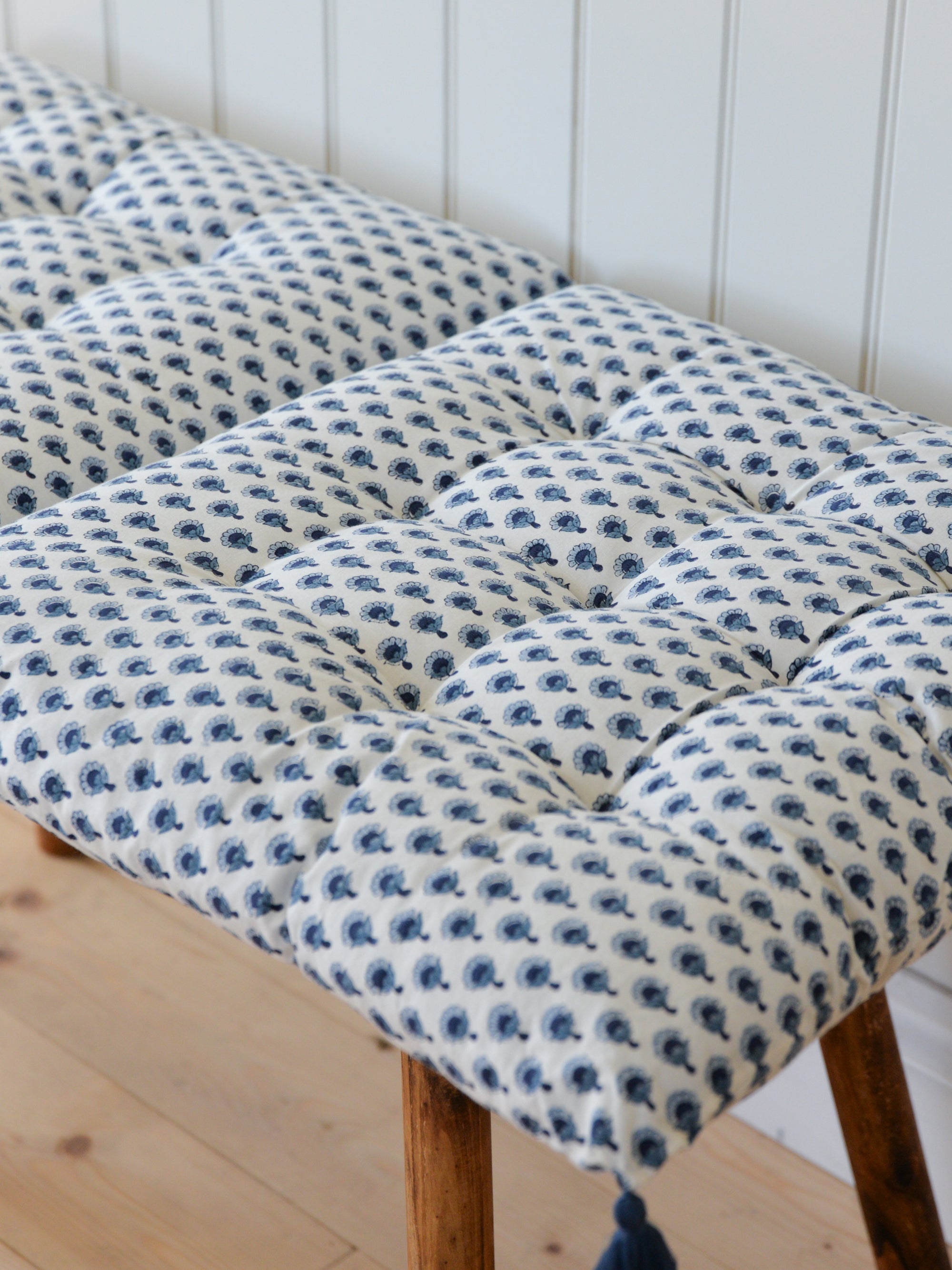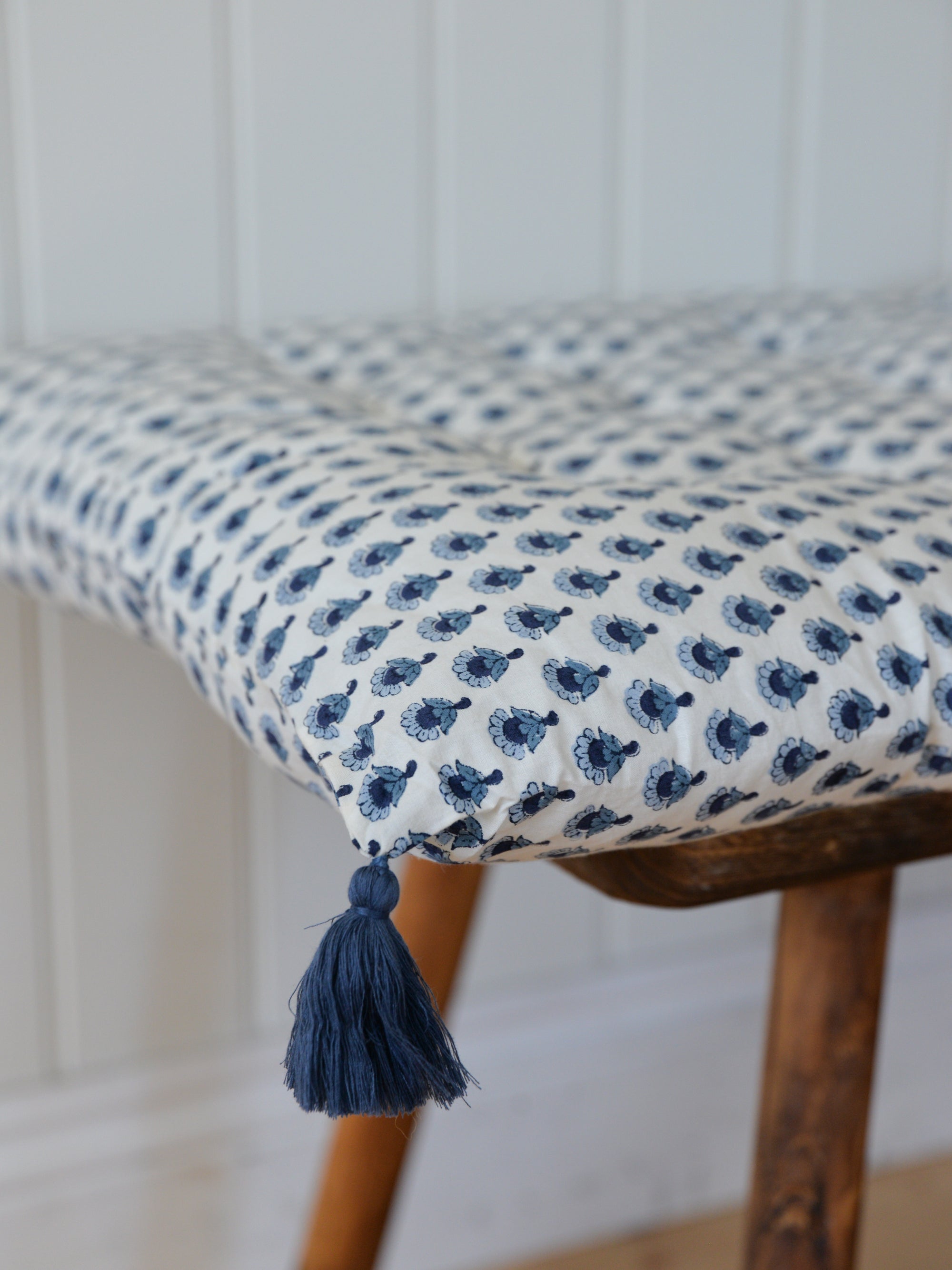 Asha Floral Chair Pad or Bench Cushion / Ash Indigo