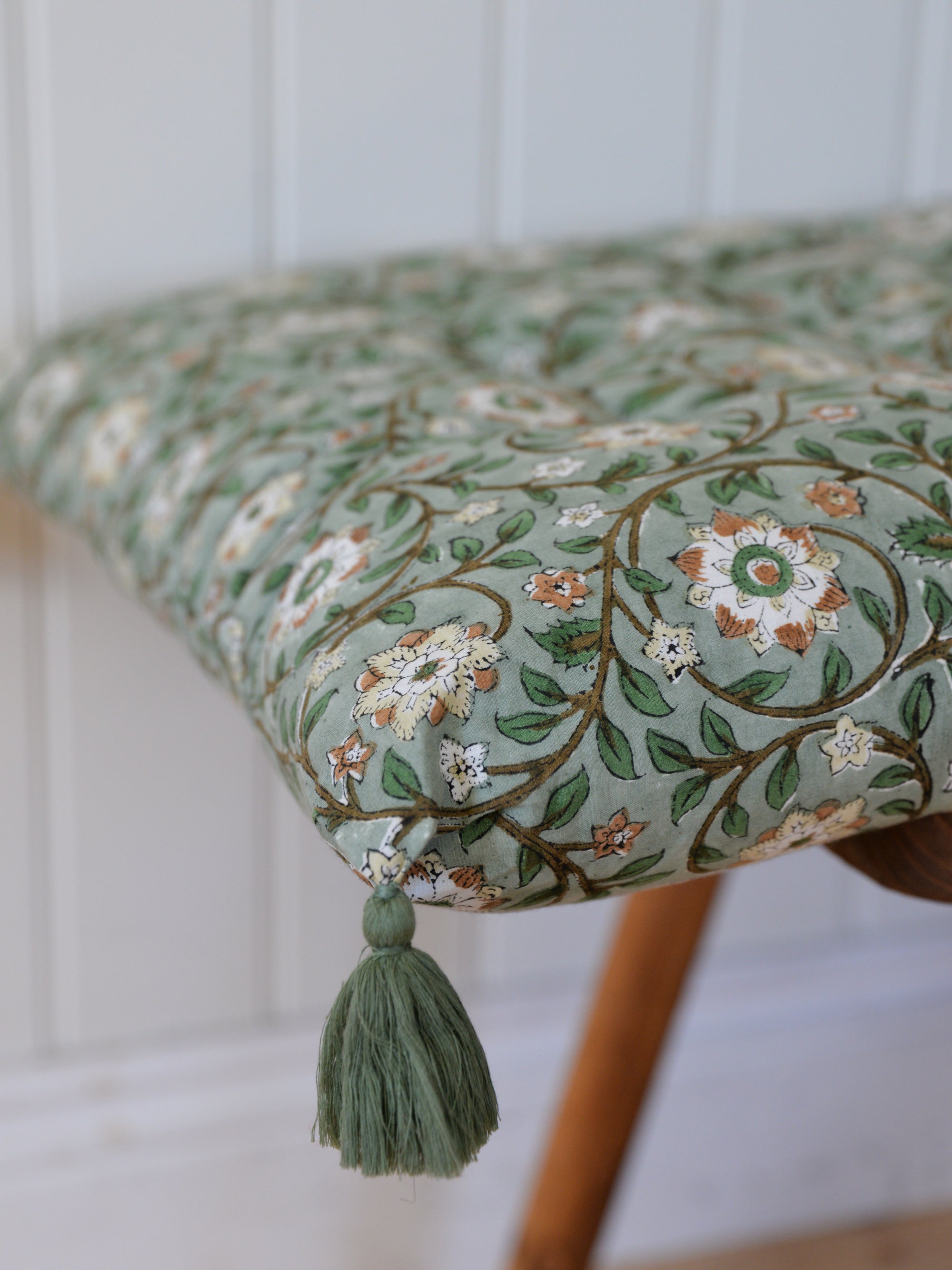 Divya Floral Chair Pad or Bench Cushion / Green