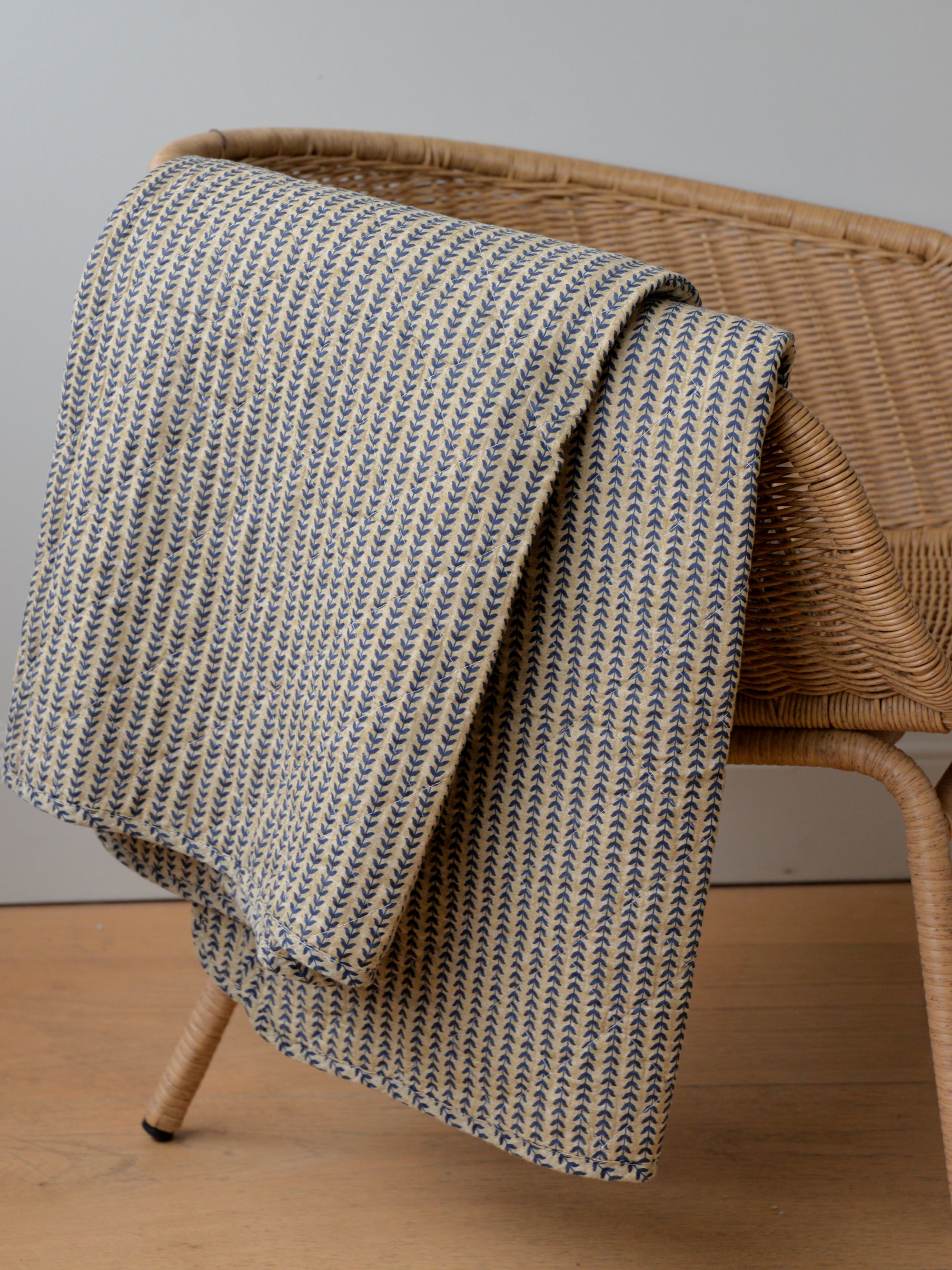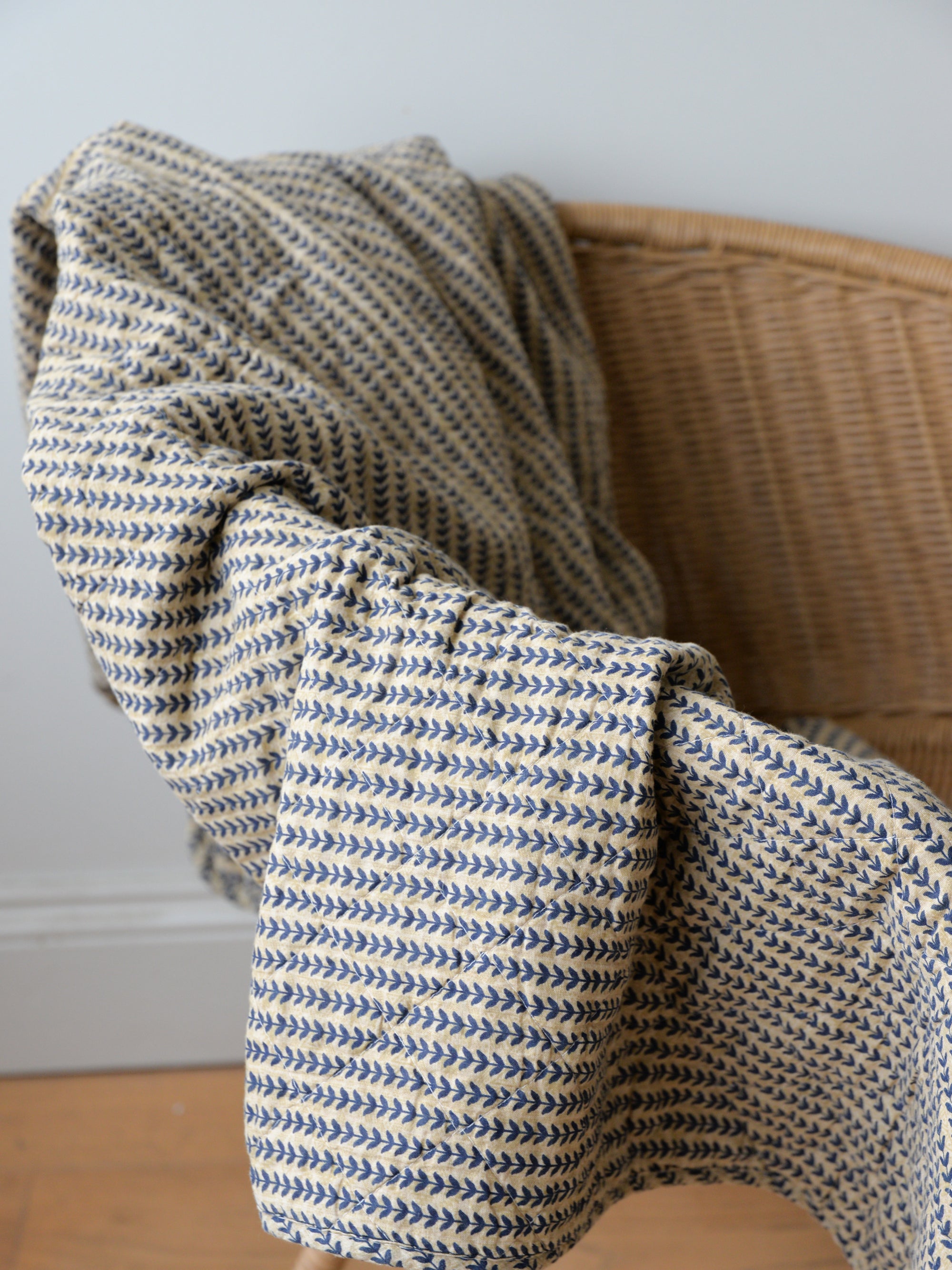 Cosy up with our range of vintage inspired quilts in pretty floral prints and cottage core inspiration. We love a vintage inspired quilt for cosying up in the cooler months and for throwing on the grass as picnic rug in the summer. We also stock a range of colourful throws, mostly made from recycled cotton. We have been particularly enjoying our stripe throws this year - the green stripe throw and pink stripe throw will add interest to your home. We recently added a range of cotton bedspreads and plain vintage style quilts.